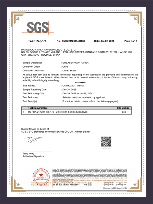 Oil Proof Paper SGS Testing Report