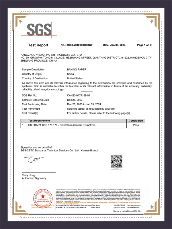Oven Paper SGS Test Report